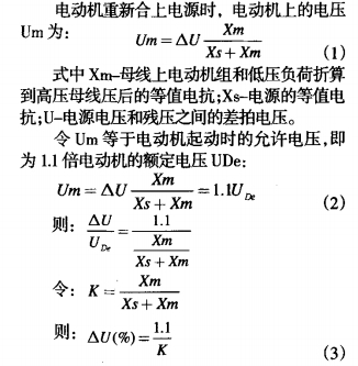 圖2所示為電動機從頭接通電源時的等值電路圖和相角圖,從圖中能夠看出,不同的0角(電源電壓和電動機殘壓二者之間的夾角),對應(yīng)不同的△U值,如0=180o時,AU值最大,假定此刻從頭合上電源,對電動機的沖擊最嚴峻。依據(jù)母線槽上成組電動機的殘壓特性和電動機耐受電流的才干,在極坐標上可繪出其殘壓曲線。