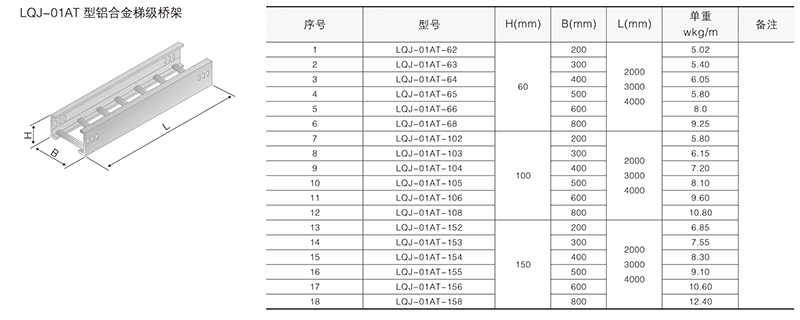 鋁合金電纜橋架在某種結(jié)構(gòu)形式中無(wú)其它結(jié)構(gòu)形式中的某-種產(chǎn)品類別,選型可作代用表示。例如:在LQU-CC型槽式鋁合金電纜橋架結(jié)構(gòu)形式中,無(wú)鋁合金配線橋架中的LPC-03D, 即表示為LFC-CC-03D。