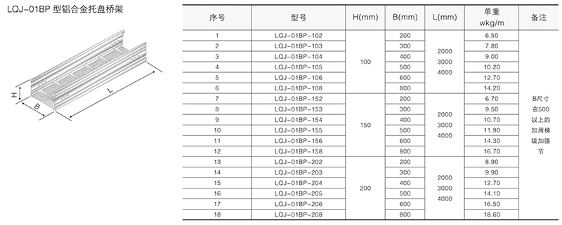 鋁合金電纜橋架在某種結(jié)構(gòu)形式中無其它結(jié)構(gòu)形式中的某-種產(chǎn)品類別,選型可作代用表示。例如:LQU-CC型槽式鋁合金電纜橋架結(jié)構(gòu)形式中,無鋁合金配線橋架中的LPC-03D, 即表示為LFC-CC-03D。